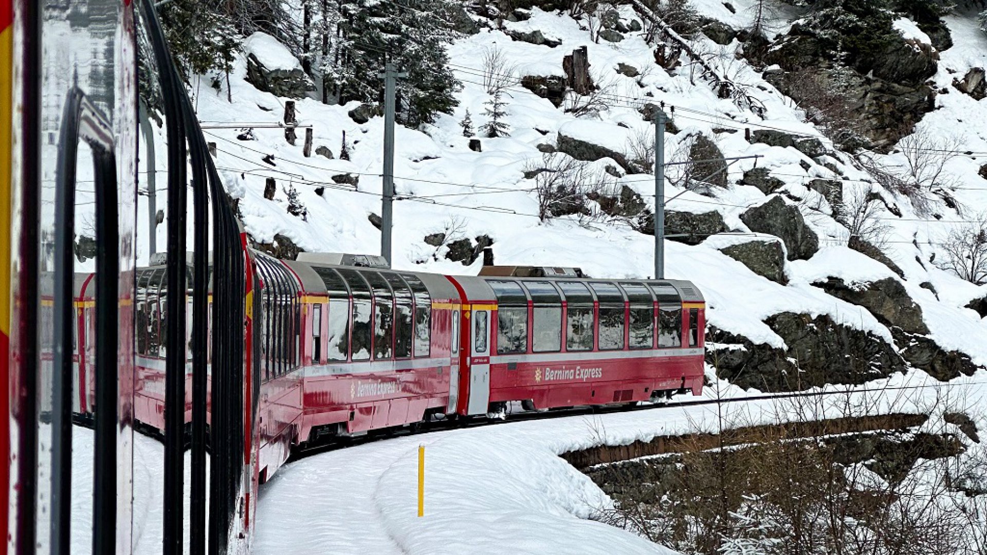 Abfahrt früh morgens von Lana. Zusteigemöglichkeiten nach Vereinbarung. Die Fahrt führt uns durch das Vinschgau über den Ofenpass – Münstair bis nach Pontresina (5km entfernt von St. Moritz) – Fühstückspause unterwegs. In Pontresina beginnt die Fahrt mit dem Bernina-Express.