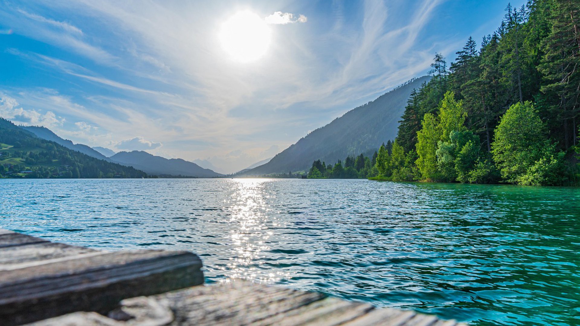 Weiterfahrt zum Weissensee. Er ist rund 11,5 km lang und ein Landschaftsschutzgebiet der besonderen Art. Ein Wanderparadies in unberührter Bergwelt.
